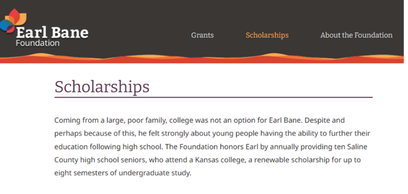 Ten $2,500 scholarships will be awarded to seniors graduating from high schools in Saline County (including persons obtaining an equivalent degree at the Adult Education Center). The scholarship is renewable for up to 7 additional semesters, with a potential total worth of $20,000 ($2,500 per semester). The scholarship can be used only toward undergraduate degrees at colleges within the state of Kansas, and must be used within the 5 year period following high school graduation.