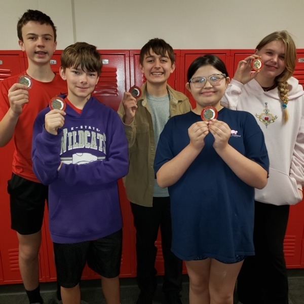 This is the 7th grade MS scholars bowl team who won 1st place out of 6 teams at Solomon Junior High on Thursday, March 5, 2026.
